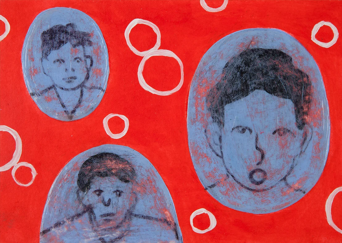 This is a selection of the many small multi-media paintings that I have created. They range in size from 3 x 5 to 11 x 14 inches. The materials in the paintings varies and includes acrylic, nail enamel, glitter, collage, pencil, crayon, wax, duct tape, permanent marker and gouache.